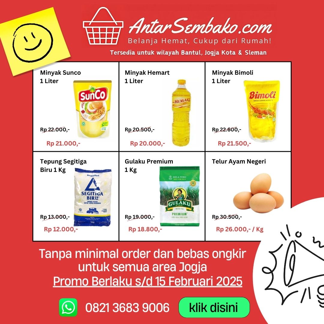 Penjualan dan layanan antar sembako jogja. Saat ini hadir di Bantul, Jogja Kota & Sleman